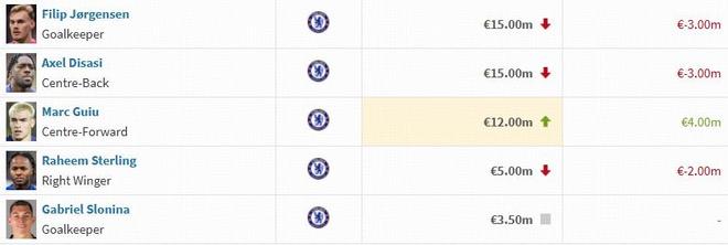 北京时间12月9日,德转公布了最新一期英超球员身价,切尔西这边,埃斯特旺上涨2000万欧,德拉普等球员下跌500万欧。
